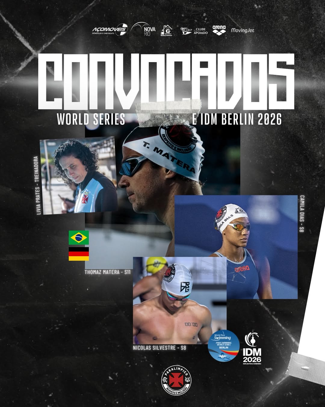 Nossos atletas Thomas Matera (S11), Camila Dias (S8) e Nicolas Silvestre (S8), ao lado da técnica Lívia Prates, foram convocados para defender o Brasil no World Series e IDM Berlim. 🏊♂️🔥