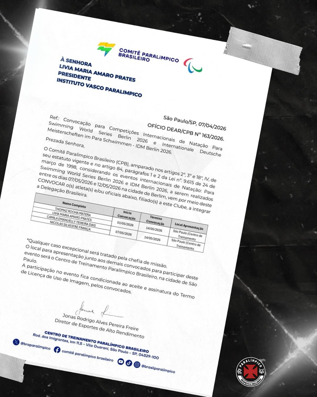 É o reconhecimento de um trabalho diário feito com muita dedicação, constância e alto rendimento, levando o nome do Vasco e do Brasil para o cenário internacional.