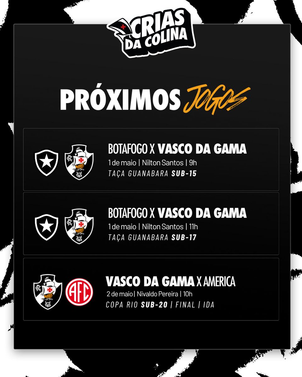 Pela Taça GB, Sub-15 e Sub-17 do Vasco enfrentam o Botafogo nesta 6ª-feira; Sub-20 encara o America no sábado pelo jogo de ida da final da Copa Rio